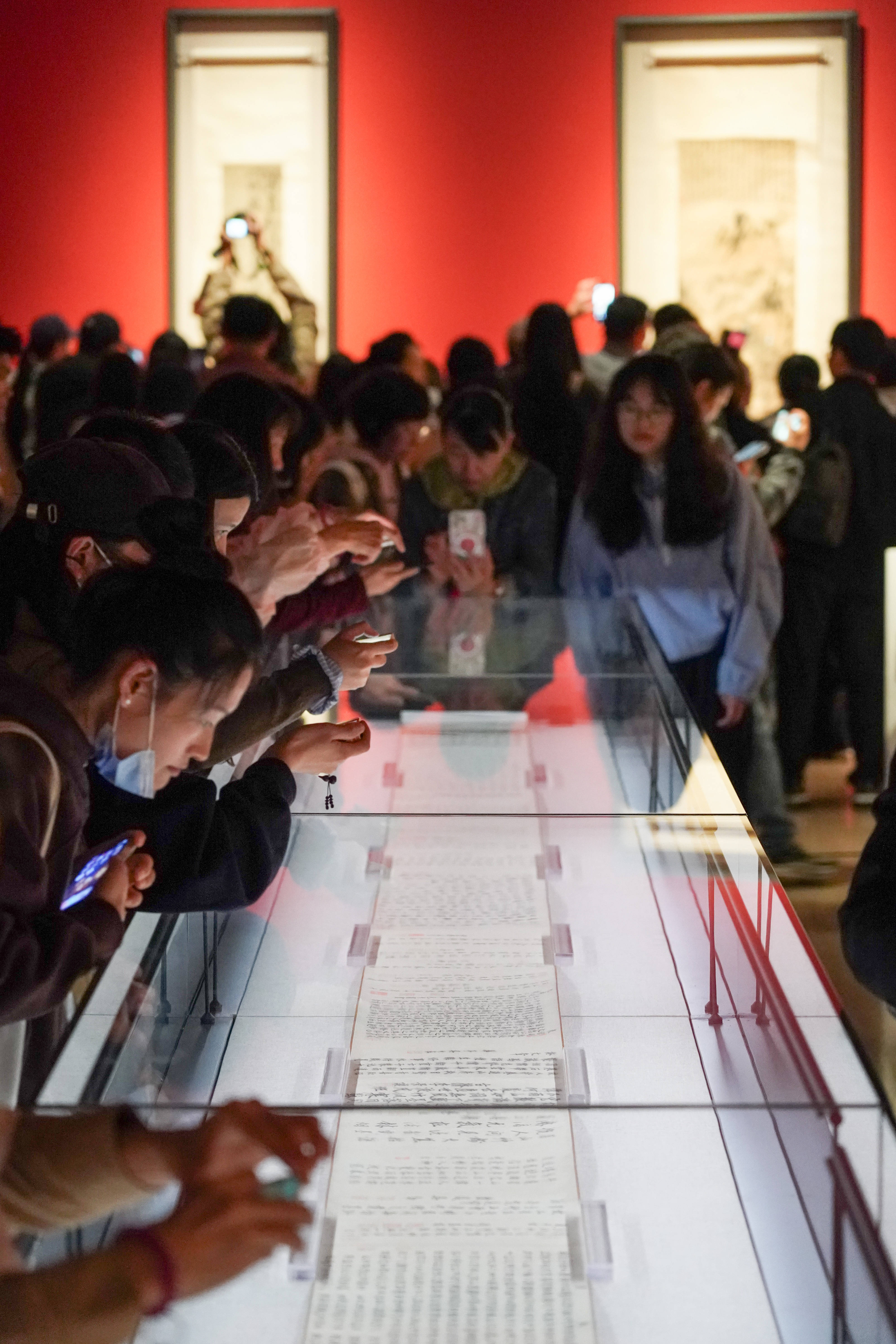 这是“贵在意·致敬经典——全国写意美术作品展”的最后一个展览日。从10月1日至8日,中国美术馆将每日开放时间延长至晚上8点,并在夜场时段新增2000个预约名额。展览中,苏轼的传世名作《潇湘竹石图》与八大山人《荷花》、石涛《江干访友图》、郑板桥《兰竹图》、黄宾虹《万松烟霭》、徐悲鸿《奔马》等名家珍品悉数亮相。